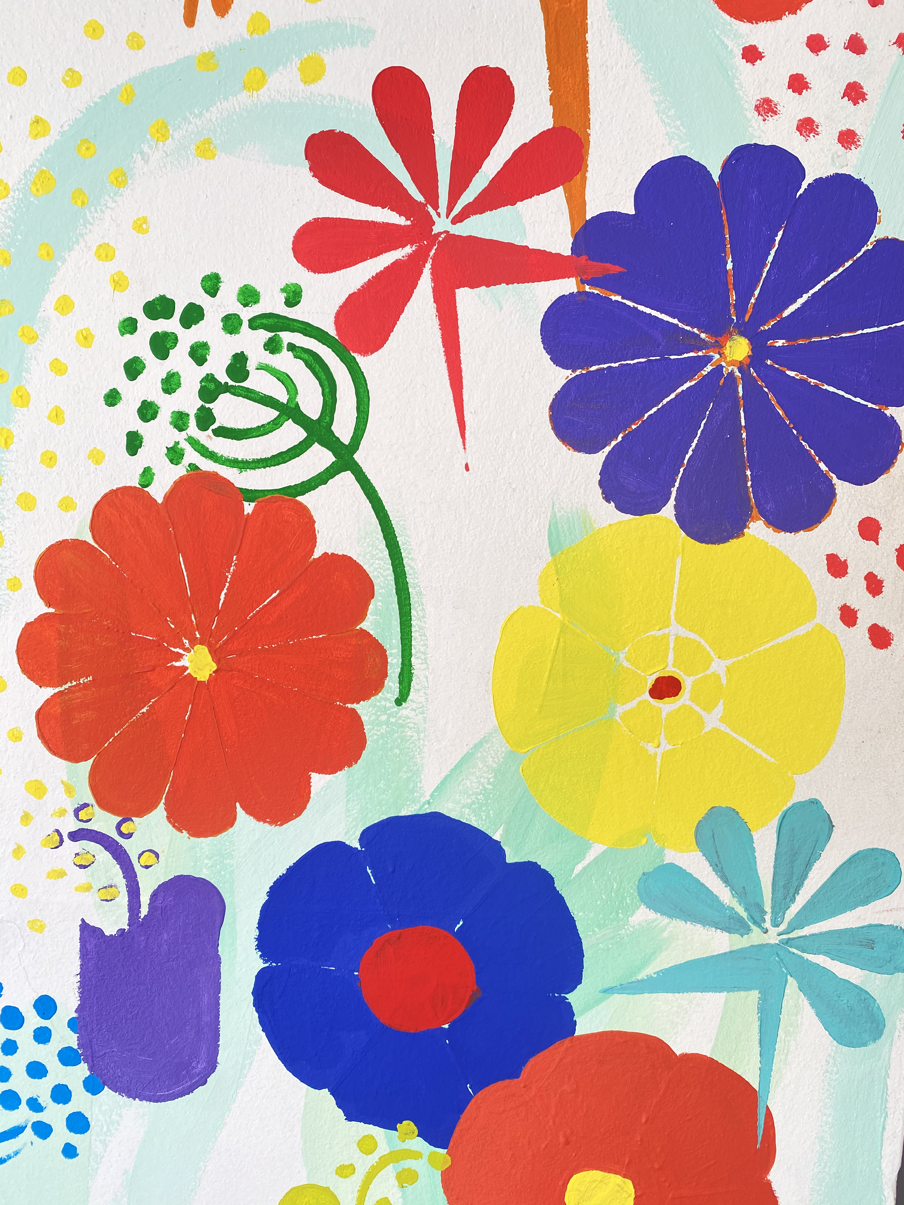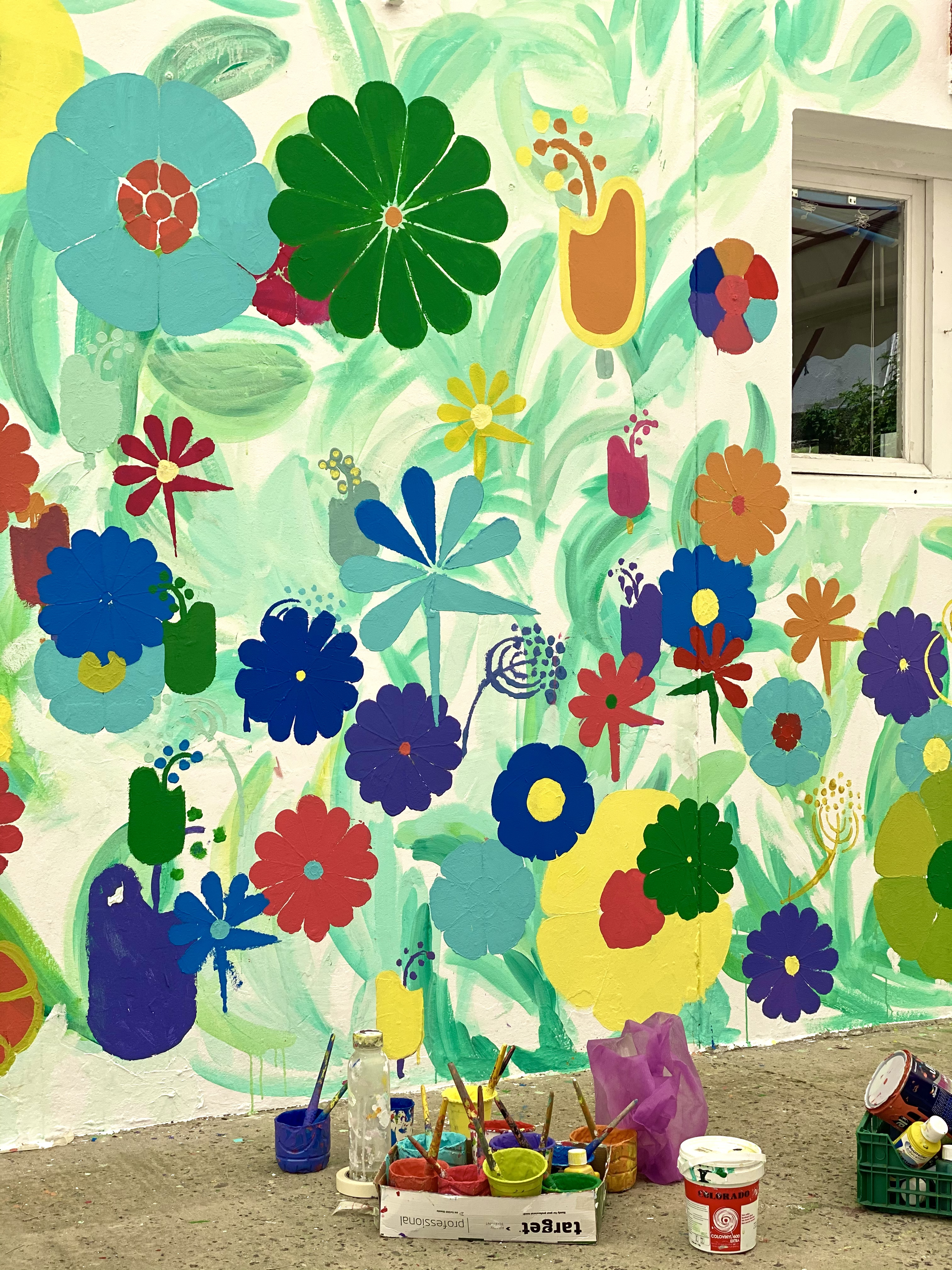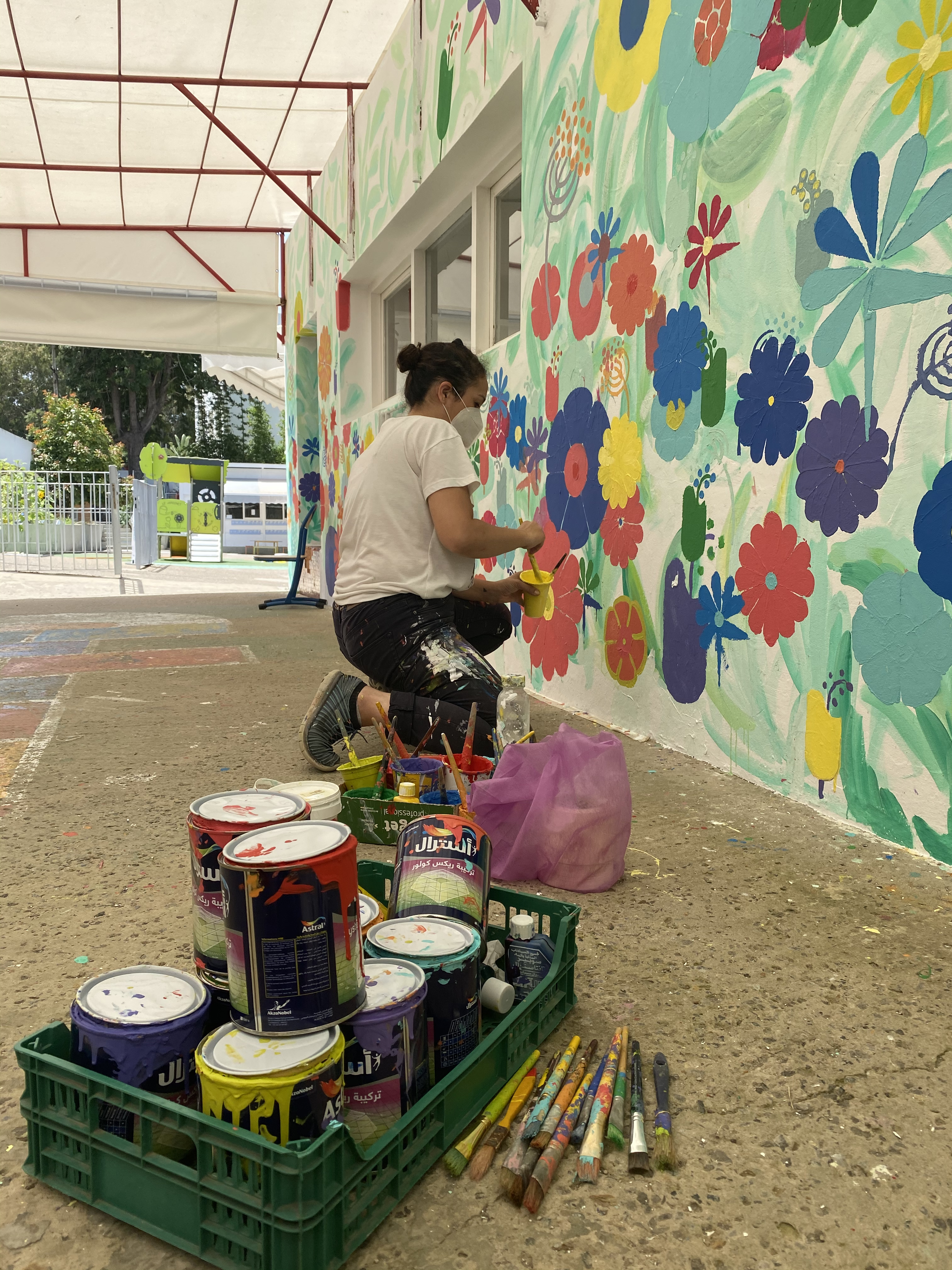 L’objectif pédagogique était de laisser les enfants peindre eux-mêmes pour faire l’expérience émotionnelle de peindre sur un mur. Une expérience qui peut être intimidante – même pour beaucoup d’adultes au départ – mais une fois l’anxiété de la page blanche dépassée c’est une source de bien être comme la méditation.