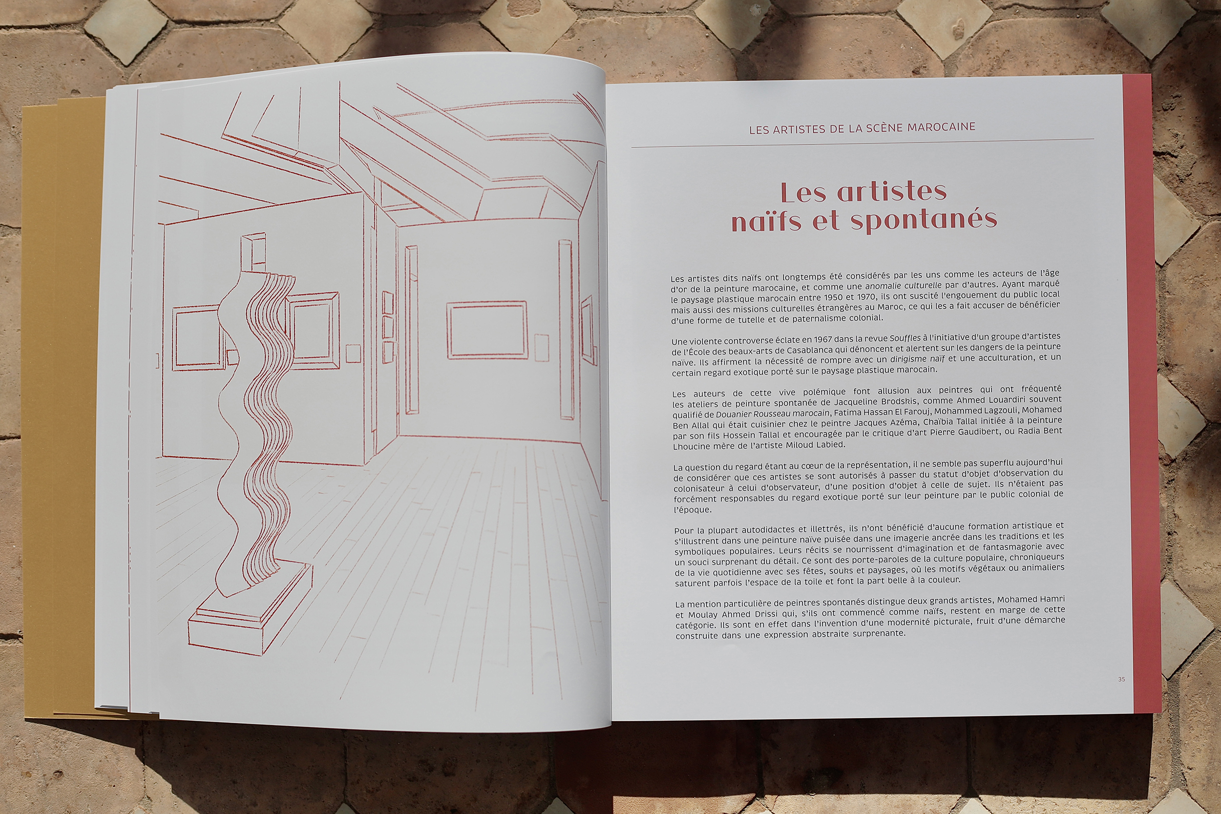 - Les couleurs jouent un rôle signalétique et séparent les œuvres d’auteurs marocains et étrangers ;